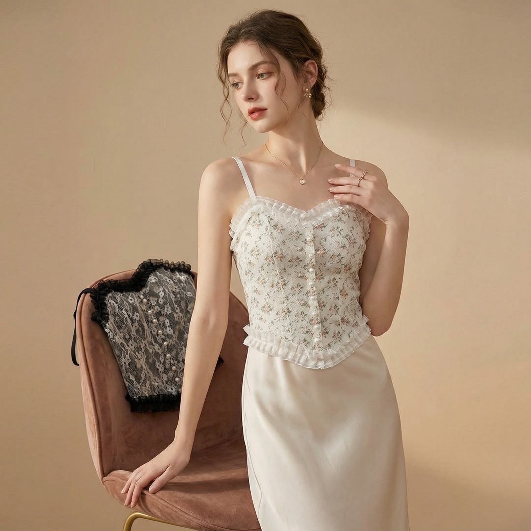 کراپ تاپ مجلسی کاپدار با دکمه‌های مرواریدی و بند رگلاژی قابل تنظیم در رنگ‌های مختلف